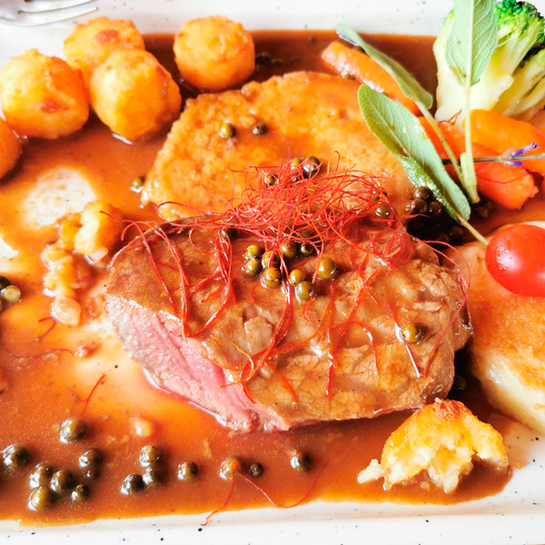 Naš jedilnik bogatijo raznovrstne jedi, skrbno pripravljene z lokalnimi pridelki. Izvrstna izbira mesa je dobavljena iz najbolj zanesljivih, kakovostnih virov. Pizze pripravljamo po tradicionalni italijanski recepturi, vrhunska ponudba izbranih vin, piva in žganih pijač pa nedvomno izpolni pričakovanja tudi največjim poznavalcem.